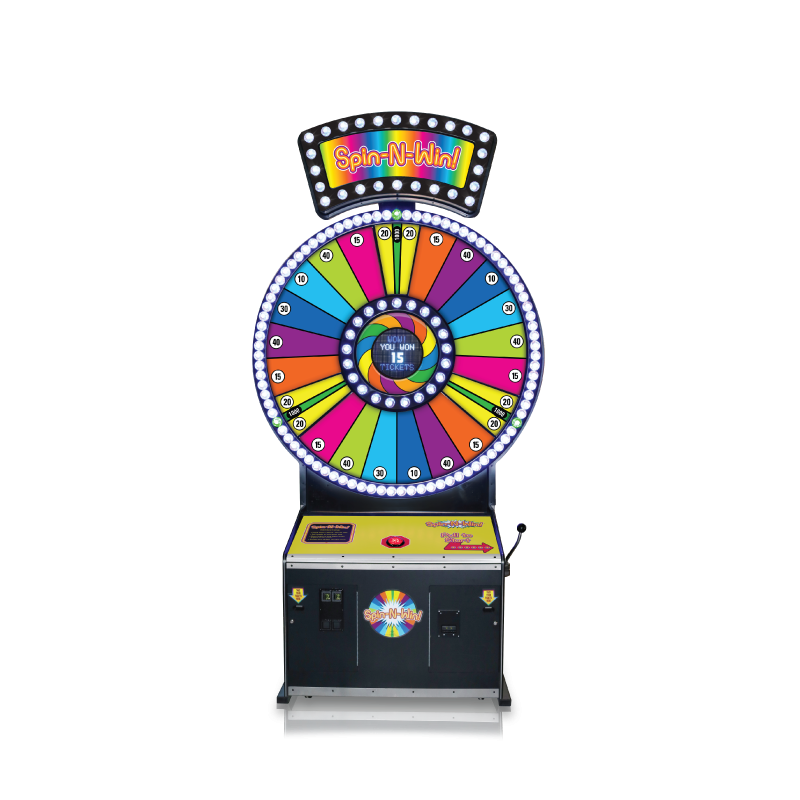 Tira de la palanca y observa cómo las luces giran alrededor del brillante y colorido dial de 1,8 metros. ¡Pulsa STOP en el momento justo para ganar grandes premios! Es divertido, fácil y emocionante para jugadores de todos los tamaños. Completamente rediseñado para facilitar su instalación, durabilidad y calidad integral, el Spin-N-Win de Bay Tek es realmente nuevo y mejorado.