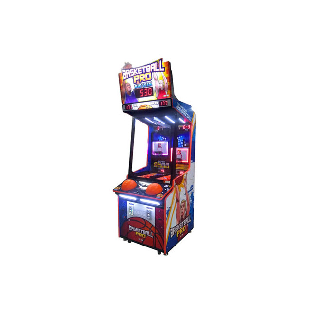 ¡Pulsa y anota! La interfaz de único jugador permite a los 2 usuarios competir en su misma canasta. El movimiento de la canasta y la media pelota de goma que hay que apretar para impulsar los pequeños balones, hacen de está máquina un juego perfecto para los centros de ocio.
