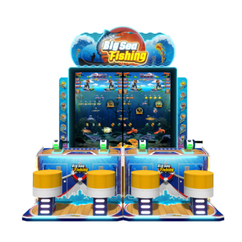 SEGA Amusements International presenta Big Sea Fishing. Un nuevo juego de pesca competitivo y redentor que lleva este popular deporte y pasatiempo a las recreativas. Los jugadores deben capturar la mayor cantidad de peces antes de que se acabe el tiempo. Se requiere una buena coordinación ojo-mano para inclinar el anzuelo y capturar el pez más grande; cuanto más grande sea el pez, más puntos obtendrá el jugador. Una vez capturado, el jugador debe enrollar el anzuelo lo más rápido posible para confirmar la captura y añadirla a su puntuación. Los tickets se otorgan según la cantidad de puntos que cada jugador tenga al agotarse el tiempo. Múltiples potenciadores te ayudarán en tu aventura de pesca, como anzuelo rápido, anzuelo múltiple (2 anzuelos), captura de área de red, carrete, congelar la pantalla y disparo rápido en el mar encantado. La jugabilidad es rápida y fácil de entender, lo que lo hace adecuado para jugadores de todas las edades. Presentado en un atractivo gabinete de temática marina con una atractiva iluminación LED azul en los bordes, Big Sea Fishing crea una experiencia cautivadora que impulsa a los jugadores a capturar la mayor cantidad de peces y convertirse en el mejor maestro de la pesca.