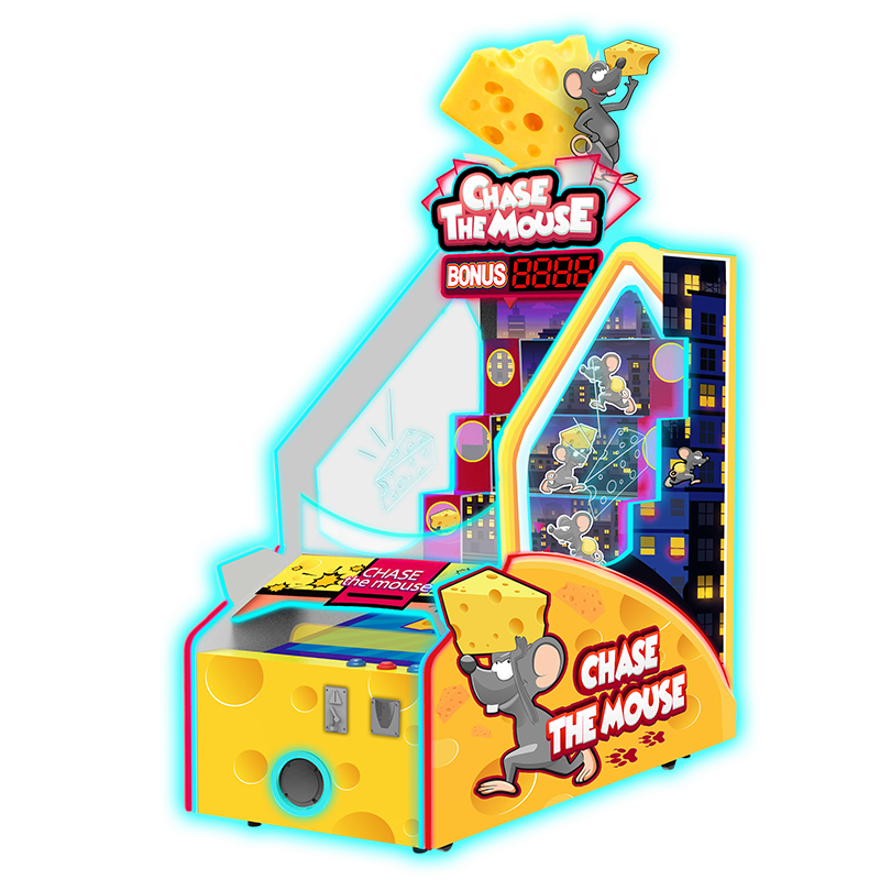 Chase the Mouse cuenta con un elegante y moderno diseño de gabinete, una iluminación espectacular, una pantalla dinámica de puntuación de matriz de puntos y fantásticos efectos de sonido. Su gran y atractivo cabezal 3D con forma de queso lo hace destacar en cualquier lugar. Con un concepto renovado de 6 ratones móviles que se mueven de lado a lado, Chase the Mouse mantiene el juego desafiante a medida que las habilidades de los jugadores mejoran y garantiza emoción y diversión sin límites para personas de todas las edades. ¡Detén a los ratones y derríbalos a todos!