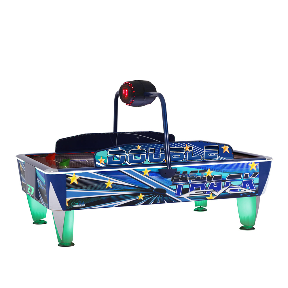 El Air Hockey para 4 jugadores también evoluciona con la nueva linea EVO. La mesa para jugar por parejas. DOUBLE EVO incorpora sonidos e iluminación LED para marcar la tendencia del futuro en las máquinas deportivas.