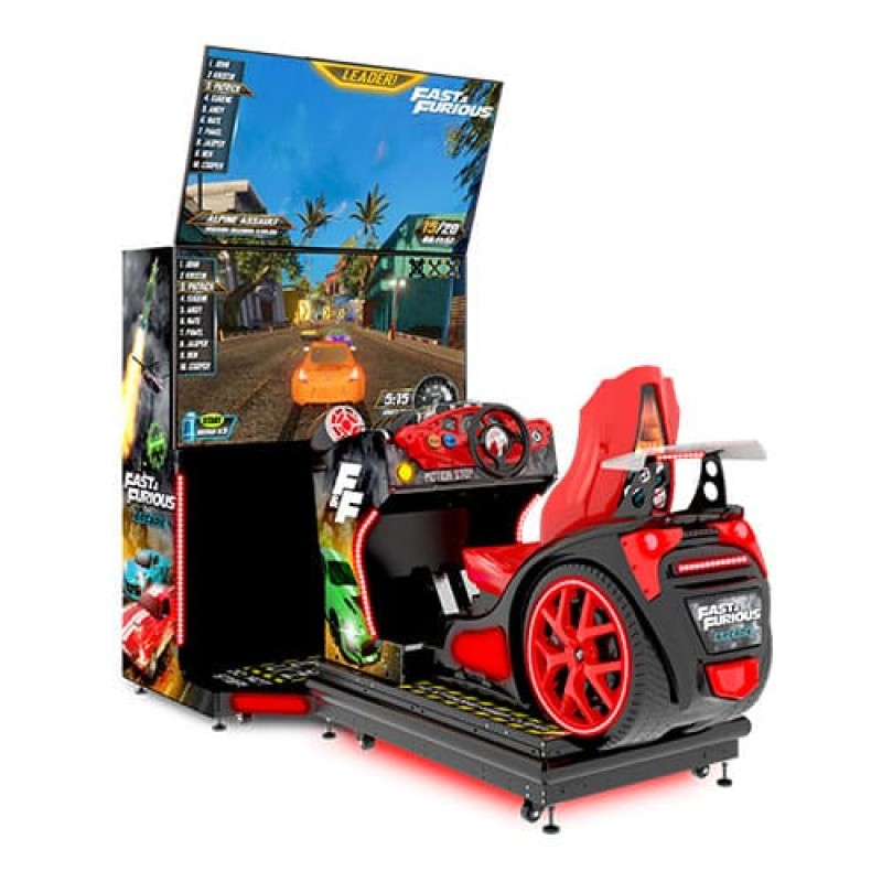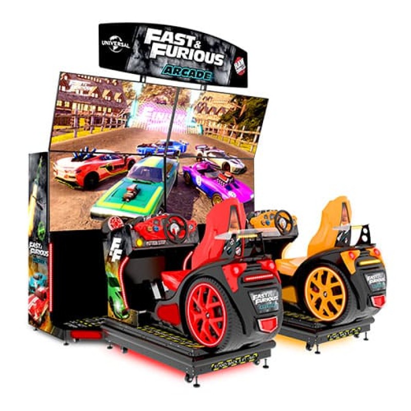GLOBAL FUN PARTNERS ha presentado en primicia «Fast and Furious». Un avance en el sector de videojuegos última novedad de Bandai Namco. Increíble juego de conducción inmersivo fuente de acción y adrenalina. La movilidad y vibración del asiento, suspensión del vehículo, sonido envolvente, imagen de gran tamaño y alta resolución te transportarán a una verdadera carrera de coches. Cada unidad dispone de 2 pantallas de 65′ y un sistema de altavoces de 5 canales lo que proporciona una experiencia de conducción increíble. Genera una hilera de emociones en tu sala recreativa uniendo desde 2 y hasta 8 puestos.
