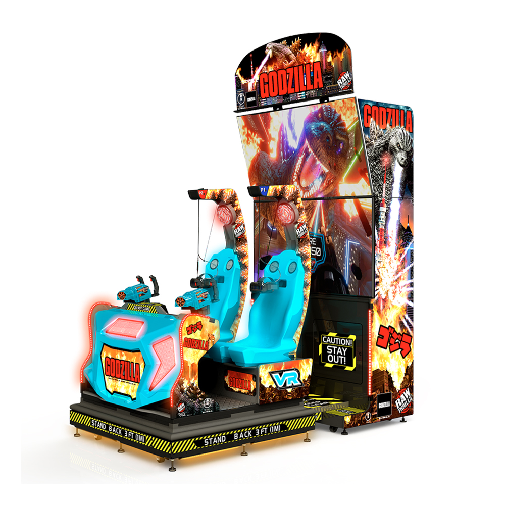 ¡Raw Thrills ruge en IAAPA con el estreno mundial de GODZILLA KAIJU WARS VR! Esta atracción de movimiento de realidad virtual desatendida presenta dos niveles de realidad virtual cinematográfica llenos de acción con un nivel de intensidad y realismo nunca antes visto… en ningún lugar. GODZILLA KAIJU WARS VR está diseñado desde cero para brindar la experiencia más convincente y al mismo tiempo brindar la confiabilidad y longevidad características de Raw Thrills. Este juego de realidad virtual altamente interactivo cuenta con la plataforma de movimiento Thrill-D NXT™, detonadores de retroalimentación de fuerza patentados, efectos de viento y vibración, audio Earthshaker™ de 6 canales y pantallas de video gigantescas GigaScreen™ de 2X65″ para absorber una transmisión interminable. de jugadores!