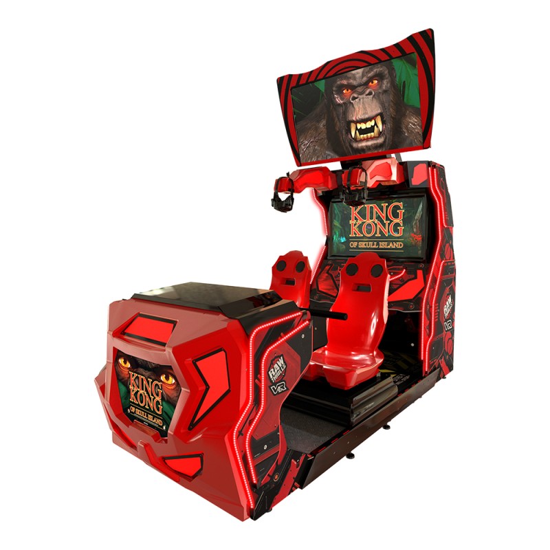 Conduce el vehículo y avanza en un mundo de realidad virtual a través de Skull Island encontrándote con criaturas interactivas y peligros en el camino. Interactúa en el mundo de King Kong de Skull Island moviendo físicamente los brazos para defenderte “virtualmente” y sumar puntos. Es una experiencia de realidad virtual interactiva cinematográfica para 2 jugadores. Destaca por sus deslumbrantes efectos visuales en 3D, emocionante acción de asiento en movimiento, pantallas de realidad virtual de vanguardia y emoción de estilo cinematográfico.
