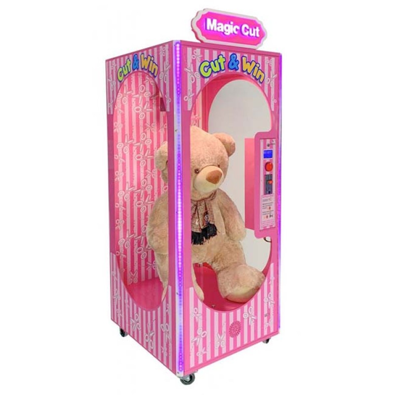 Una apuesta segura! Las grúas de peluches gigantes están de moda. El reto para los jugadores consiste en cortar el cable con el pulsador de la máquina para conseguir el premio. Rápida de jugar y atractiva. El sistema de apertura de puerta facilita su recargar con otro peluche una vez dispensado el anterior.