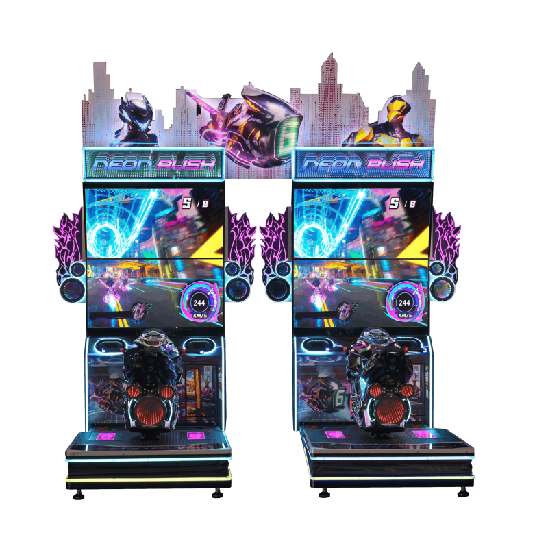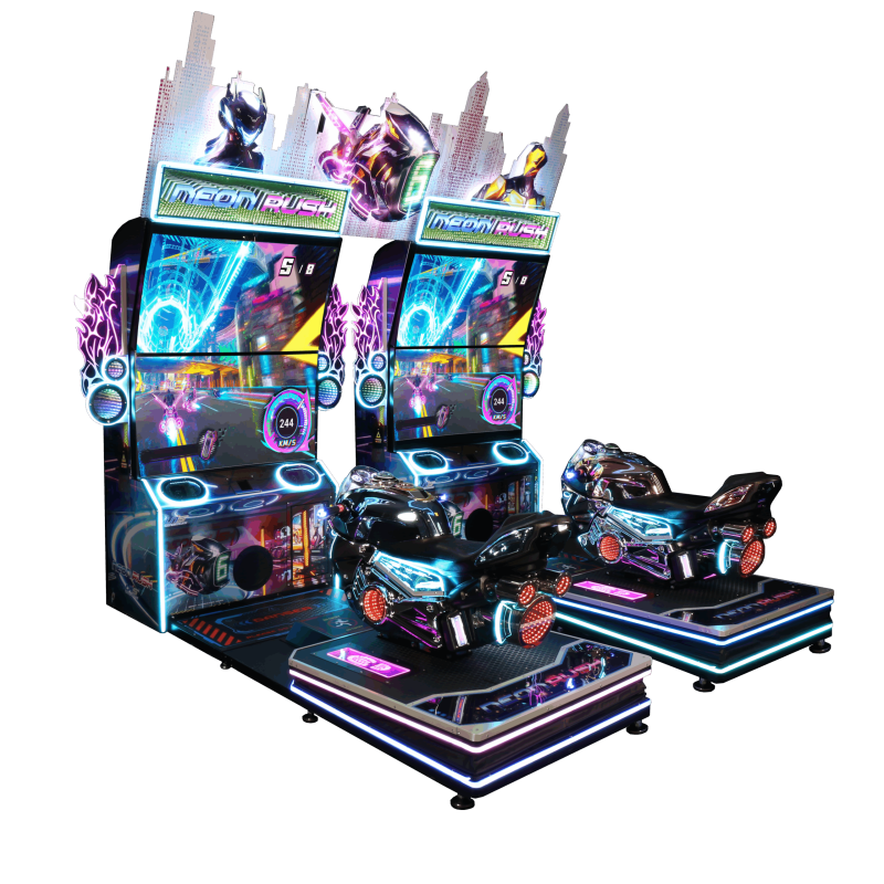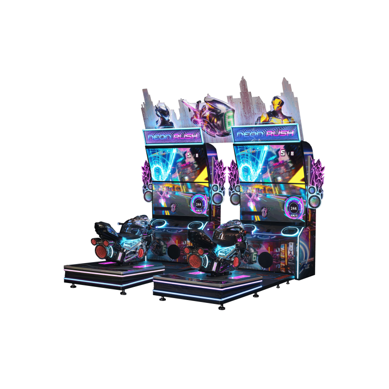 Siente la emoción, sé dueño de la carrera. Con sus dos pantallas de 49″ y el sistema de movimiento, vivirás una experiencia inmersiva en este simulador de carreras de motos.