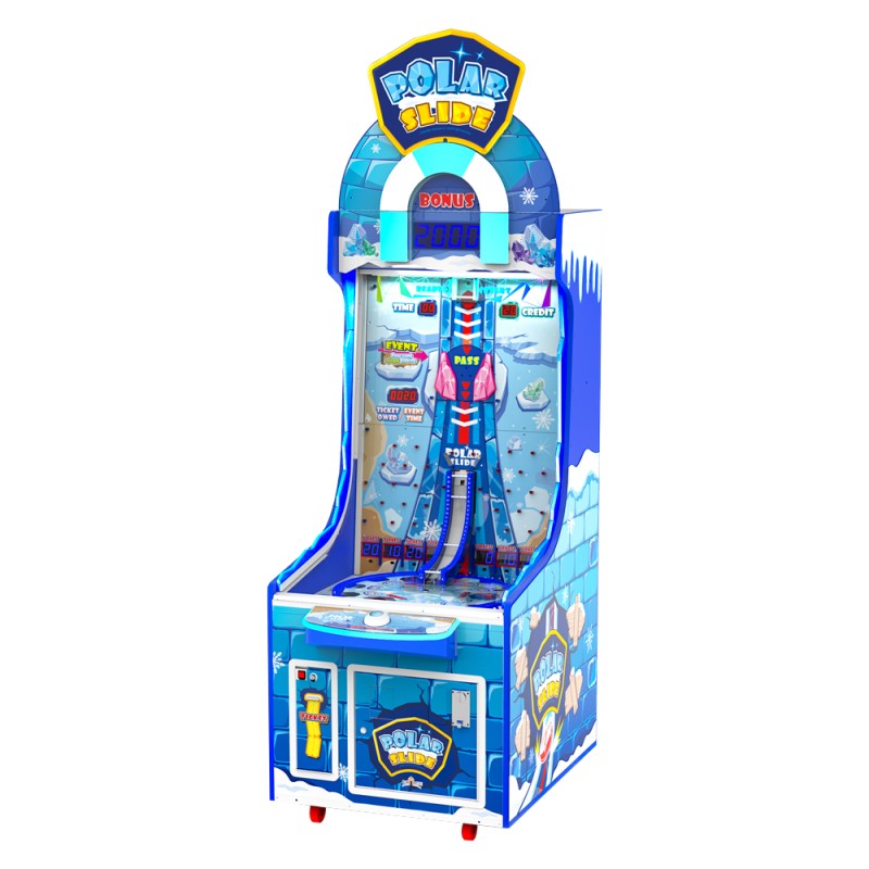 Su vistosa iluminación azul, con marquesina en forma de iglú y geniales ilustraciones nevadas de arriba a abajo, hacen de esta máquina un atractivo foco de atracción con temática polar en el centro de ocio.