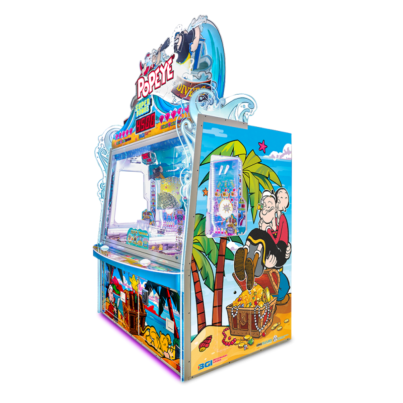 Popeye Dizzy Divers es una máquina para dos jugadores donde los jugadores intentarán completar varios desafíos para activar diversas funciones de bonificación. El «Bono Red» hará que la red, cargada con monedas, se mueva por el campo de juego y libere más de 750 fichas. ¡Es una experiencia única que impulsará la repetición de partidas y los ingresos!