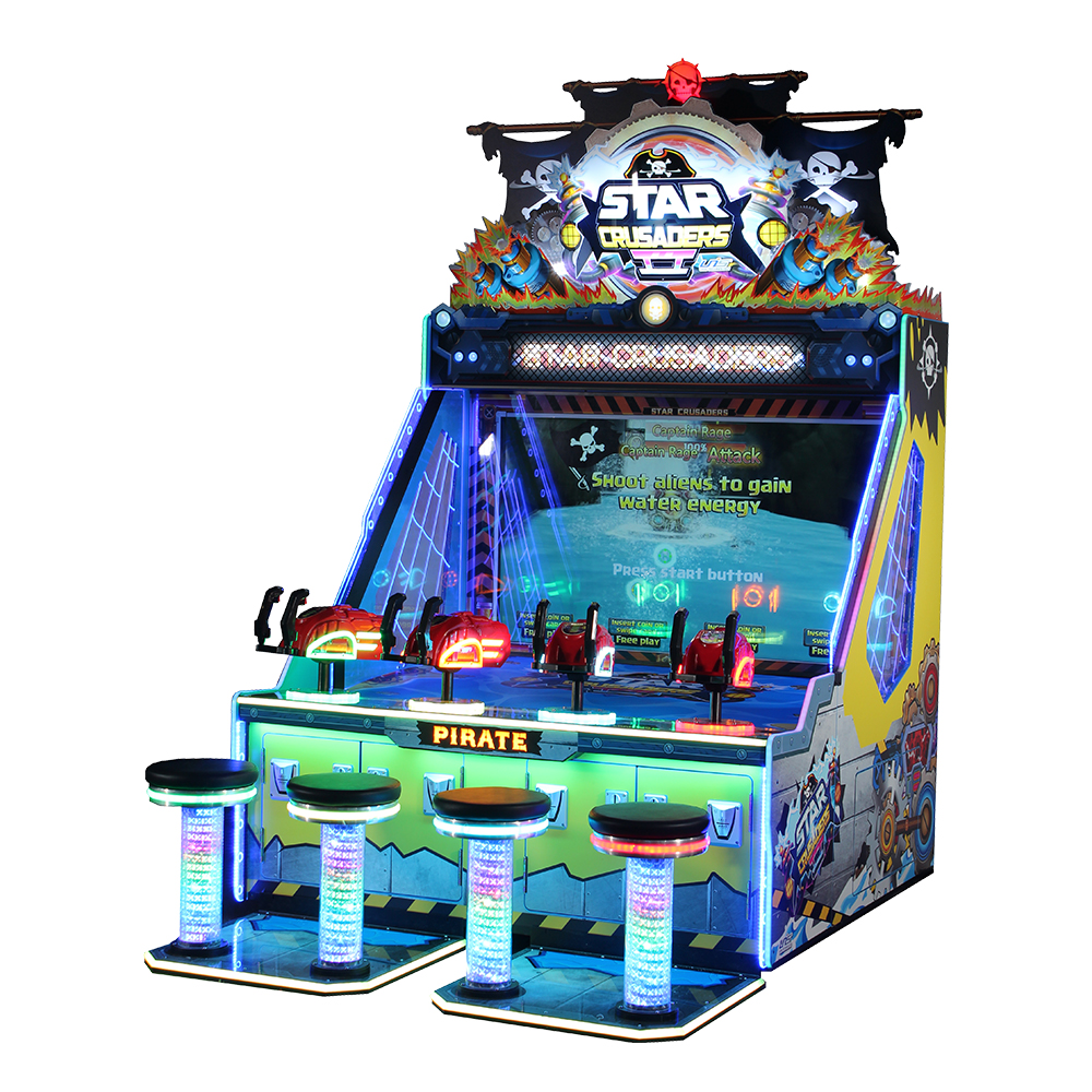 Star Crusader es el mejor juego arcade de disparos de agua. Hasta cuatro jugadores controlan cañones de agua y luchan contra criaturas marinas virtuales y objetivos mecánicos reales. Prepárate para enfrentarte a una variedad de criaturas marinas futuristas, y cada ronda culmina en una emocionante batalla contra un jefe final.