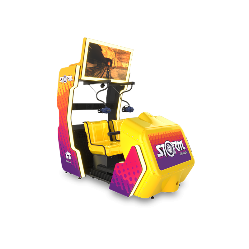 The Storm™ es una experiencia de juego de realidad virtual única en su tipo con tecnología de gestos manuales y juego competitivo. Este asiento de 2 movimientos sin operador con efectos especiales ofrece un viaje increíble y emocionante con un alto retorno de la inversión. IMPULSA LA REPRODUCCIÓN