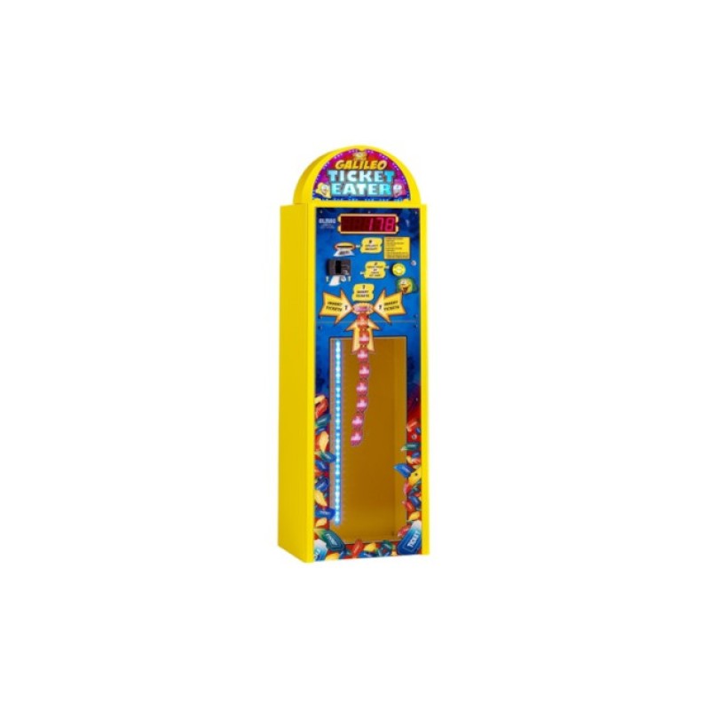 Máquina con dos caras destinada al intercambio de tickets ganados por los usuarios por recibos con la suma total de los tickets introducidos.