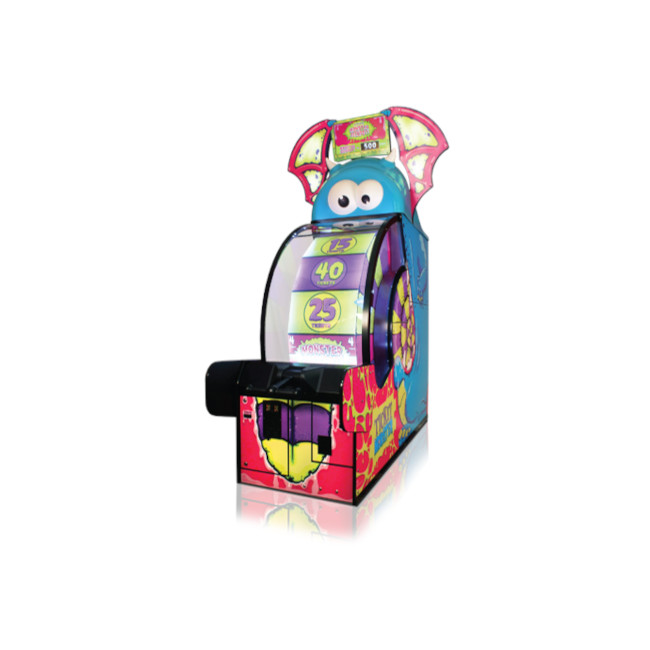 Los jugadores dan un paso adelante y tiran del mango para hacer girar la gran lengua del monstruo. Cuando la lengua se detiene, los jugadores reciben tickets.
