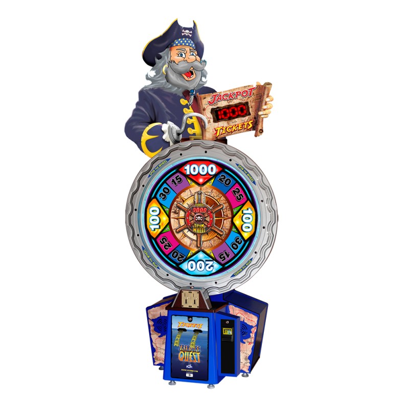 Gira físicamente el timón del barco para que se detenga en los grandes premios de tickets. Treasure Quest es una máquina de redención clásica de arcade.